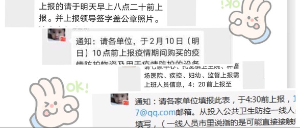 “各单位,四点三十前上报到邮箱xxx”“收到!”
