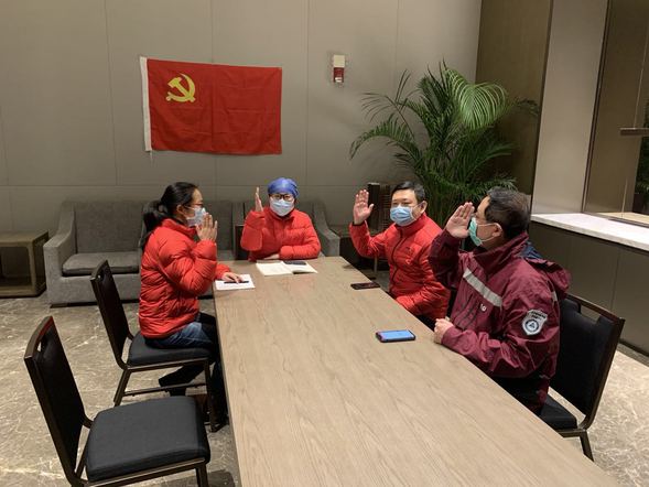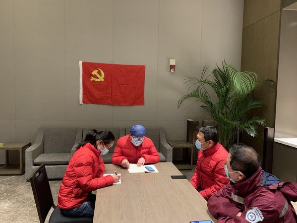 在这个特殊的时期,在这个没有硝烟的战地上,临时党支部就是战斗堡垒,每一位党员就是一面鲜活的旗帜!支委会的召开,进一步统一队员思想、凝聚队员力量,他们深知,作为一名医护人员,在党和人民最需要他们的时候,他们必须挺身而出,他们必须团结一致、勇挑重担、不辱使命,打赢这场没有硝烟的抗疫战争!让党旗飘扬在疫区,请党和人民放心!