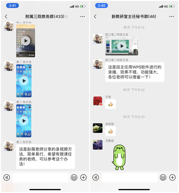 目前,我院已经建立了大四理论授课群:超星尔雅25个,qq群27个;见习课群:超星尔雅1个,qq群1个:授课教师群1个;教师们已经开始制作录制有声课件,同时不忘融入“课程思政”内容,以备应急使用;大五建立实习交流微信群,学生们在群里可以跟教师们随时交流各种问题,已经用雨课堂开展在线讲座,病例讨论等内容,网络拥堵时就在学生微信群里进行实时语音在线讲解或其他直播方式,不管哪种方式学生的配合度都很高;同时在治趣网上给学生发布病历测试题以训练学生的临床思维,在24小时医学频道发布学习视频供学生学习等等,真正做到“停课不停教,停课不停学”。
