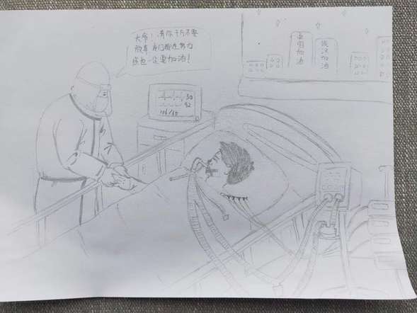 张子英将她在病房和大爷的情景,用画笔画了下来,她希望等大爷康复了,可以送给他老人家。
