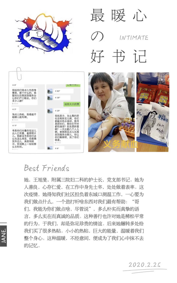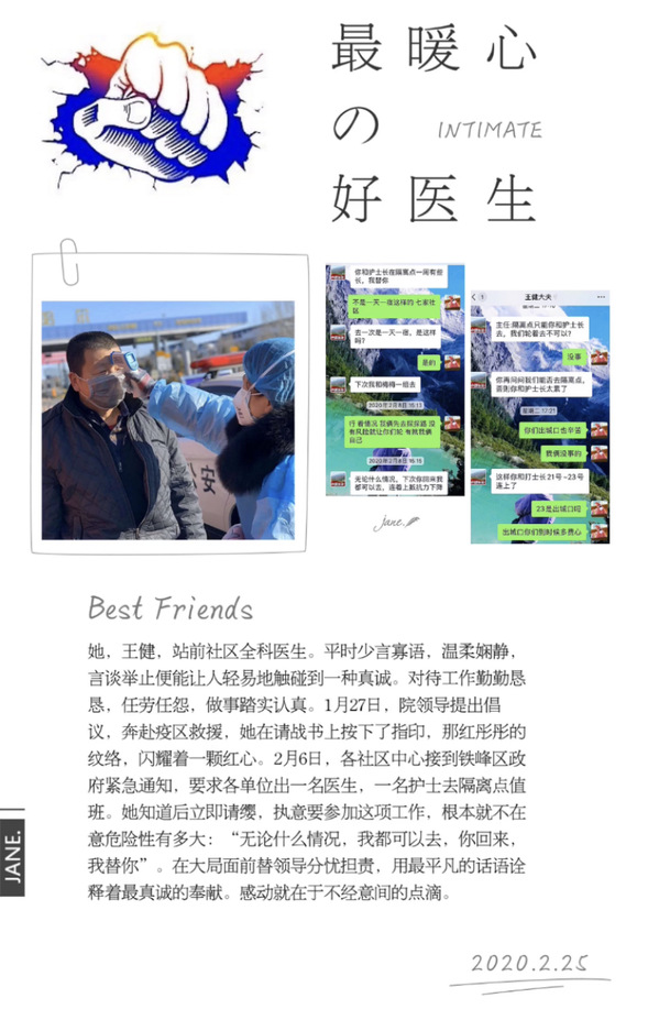 2020年开局,一场始料未及的疫情肆虐祖国大地,华夏儿女勠力同心,凝聚大爱,全力抗击,终于在艰苦卓绝的努力下,疫情有了稳定的势头。疫情无情,人间有爱。抗疫期间,站前社区卫生服务中心工作人员迎难而上,奉献着自己力所能及的光与热,发生在她们身边的事虽不是惊天动地,但带给我们的感动却永远值得被铭记。