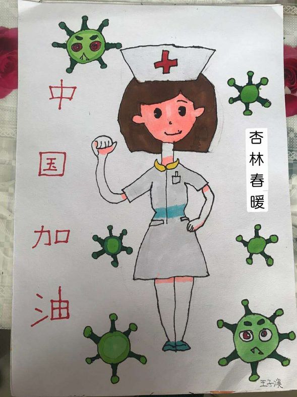 两个孩子祝福前线医护人员战胜疫情早日凯旋