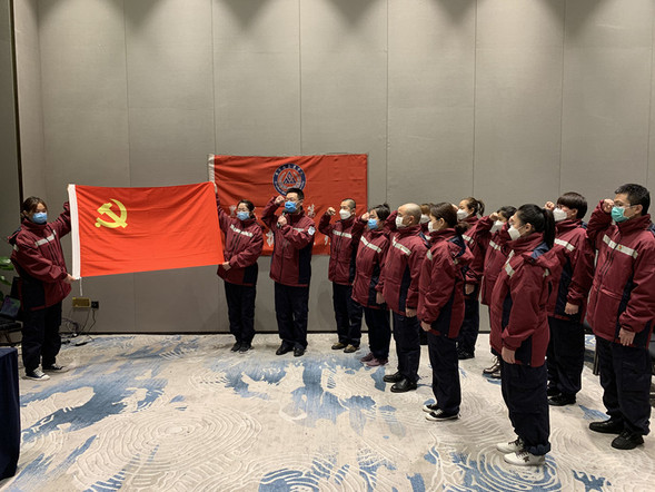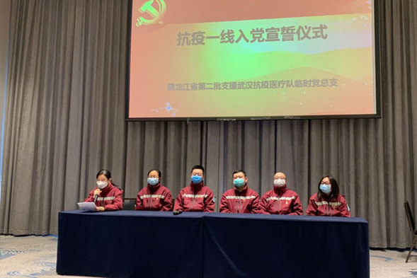 黑龙江省第二批支援武汉抗疫医疗队在驻地举行预备党员宣誓仪式