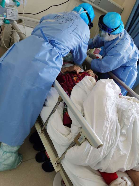因为我是重症医学科护士,所以之前我护理的都是气管插管病人。记得我曾经告诉过自己的学生,ICU护士与普通病房护士最大的区别是更加注重患者的病情观察,尤其综合ICU护士要掌握所有科室病人护理、观察重点。患者病情发生变化时,我们除了第一时间发现,还要迅速排查其他外界因素,找到真正原因。并且在医生到达之前准确给予初步的紧急处理。无论我们预测这个患者预后怎样,也必须履行自己的职责。在来武汉时,我也是信心满满,因为我相信自己的工作经验一定可以胜任这里的工作。但是面对一些无法挽回的生命时,确有力不从心之感。但是,我觉得尽我应尽的职责,想必也是对生命最大的敬畏吧!