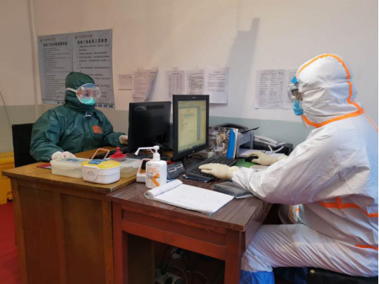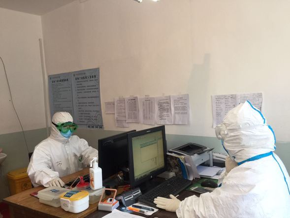 发热门诊的患者,多数都涉及到多学科的专业,布贺、何薇、关守琨、黄侃、王健、刘晶晶和闫继舟是消化科、神经科和心内科的医生,在这里他们发挥自己的专业特长,为患者精心治疗本专业方面的疾病。每名患者都要详细询问病史、接触史,从病人的旅行史、接触史、症状中细致的判断其是否符合疑似标准,开具各种检查化验,甚至还要从患者的话语中去假存真,大脑一刻都不敢放松。基本上开工半个小时,浑身就会湿透,1个小时嗓子就会冒烟,而为了高效利用宝贵的防护装备,他们尽量延长工作时长,10多个小时不吃不喝不上厕所,而他们,从未叫苦喊累。