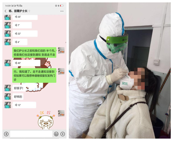 护士李洋向杨丽侠申请继续留在发热门诊工作