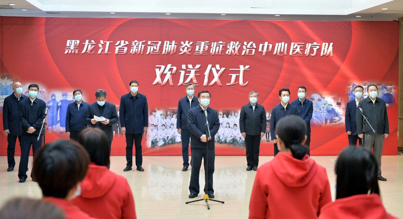 22日上午,省新冠肺炎重症救治中心医疗队欢送仪式在哈医大一院群力院区举行。省委书记、省人大常委会主任、省应对新型冠状病毒感染肺炎疫情工作领导小组组长张庆伟出席仪式并讲话,代表省委省政府和全省人民向省重症救治中心医疗队在救治新冠肺炎重症患者中取得的优异成绩表示祝贺,向日夜奋战、救死扶伤的医务人员,在背后默默奉献和支持的家属和亲人,关心支持医疗救治的社会各界人士表示崇高敬意和衷心感谢。省领导张雨浦、孙东生及有关部门负责同志,医护人员代表,各医疗队有关同志参加欢送仪式。齐齐哈尔医学院党委书记顾长虹专程赶往哈尔滨,共同迎接勇士回家。