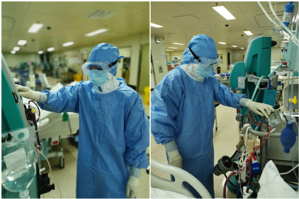 战疫心连心,虽在不同的战场上,张夺(左图)与爱人(右图)的责任与担当却相同