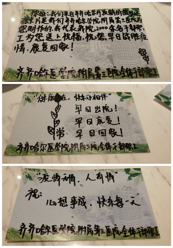 附属三院特制的爱心卡片情暖抗疫一线