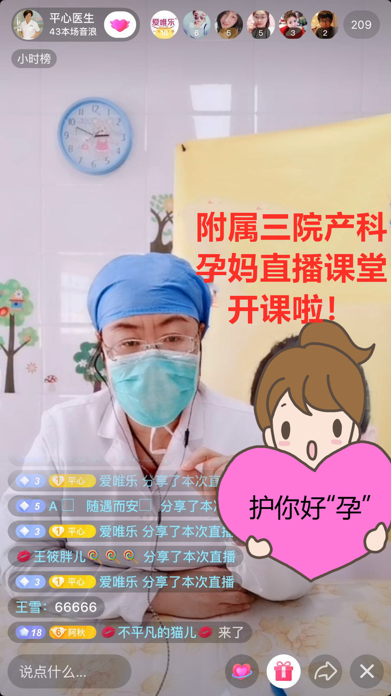 附属三院产科以孕妇健康为已任,门诊、病房均严格遵照防控流程科学开诊,确保孕妇就诊安全。同时,多举措满足孕妇就医需求,孕妈们可以关注平心医生抖音号“pingxin301”或者加入“齐医附属三院快乐孕育微孕校”微信群,通过线上直播和问诊,为您排忧解难、答疑解惑。
