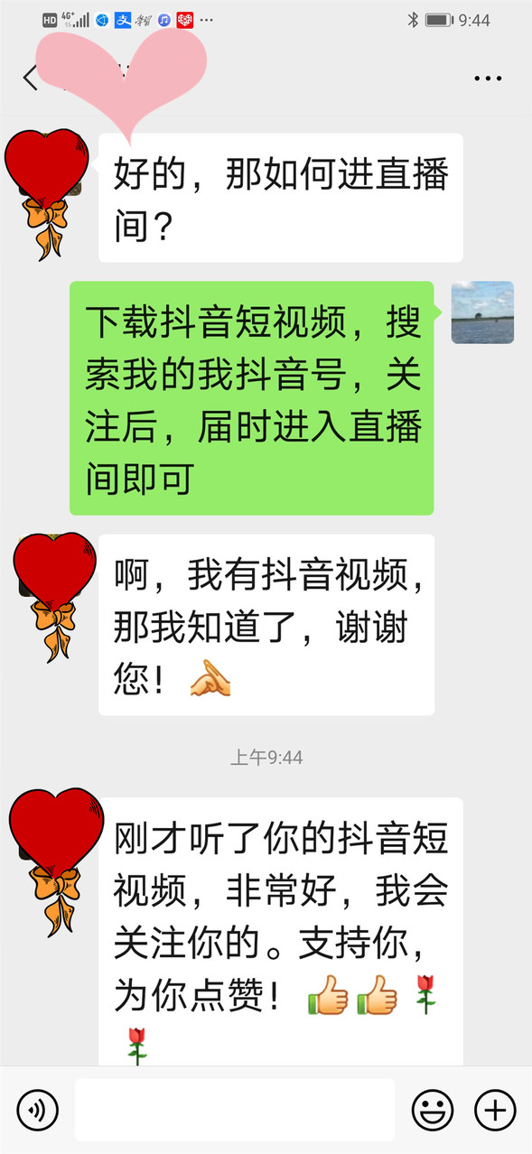 直播后,患者向张新平反馈:“非常好,为你点赞”