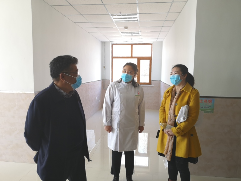 我院副院长辜振刚(左一)与感控科科长符云(右一)对讷河市博爱医院院感防控措施落实情况进行检查指导