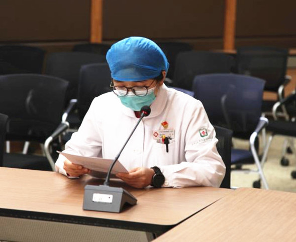 刘旭之以《不忘初心 牢记使命—发挥党员模范先锋作用,做新时代的奋斗者》为主题讲述了他驰援武汉的心路历程。他讲到:“我院党员干部在这次援鄂医疗队的表现,充分发挥了党员先锋模范作用。在组建医疗队成员的时候,各科室党员,包括预备党员和入党积极分子都积极报名,在这场没有硝烟的战斗中,是检验和考验我们每一名共产党员的时刻。初心是什么,初心就是战斗面前舍我其谁;使命是什么,使命就是战斗前面,我不上谁上。当我们的医疗队抵达武汉的时候,疫情的严重远远超出了预想,在防控一线,我的同事们临危不惧,与死神较量,用生命守护生命。”这些感人的事迹,用实际行动擦亮了共产党员的“红色名片”。