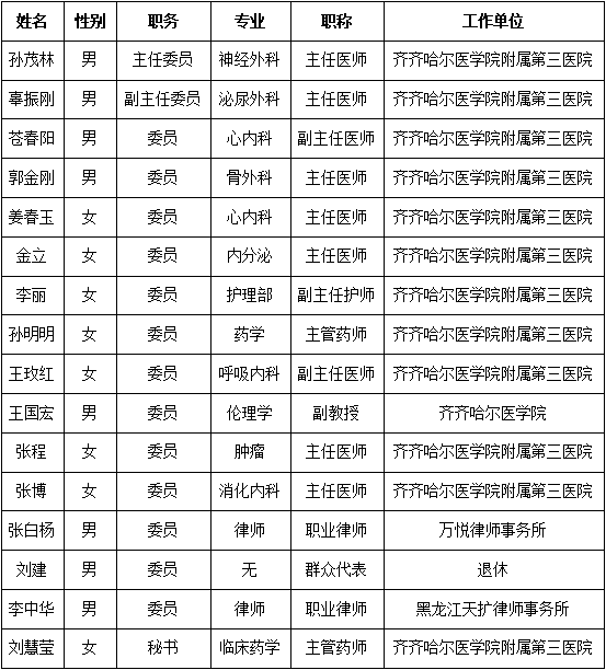 第四条 伦理委员会名称:齐齐哈尔医学院附属第三医院医学伦理委员会。