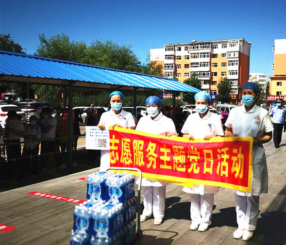 外科第一党支部为预检分诊的工作人员送来防暑降温水