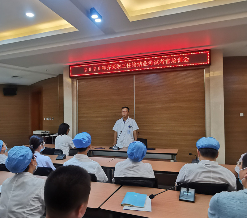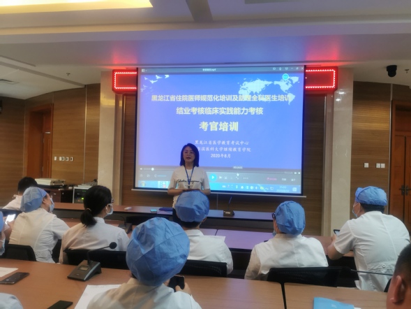 根据黑龙江省卫健委《关于做好2020年黑龙江省西医类别住院医师规范化培训及助理全科医生培训结业考核与疫情防控工作通知》文件要求,受新冠肺炎疫情影响,2020年住院医师规范化培训结业考核临床实践能力考核部分由培训基地承担,为提高考官执考能力、明确考核标准,我院于8月10日下午举办考官培训会。会议由住培办主任刘玥主持,全院33名考官参加会议。