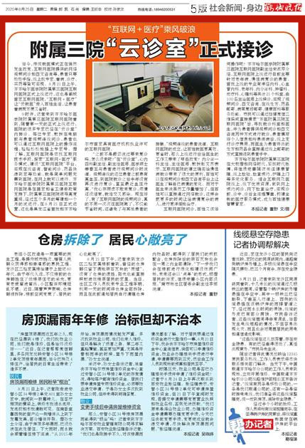 8月25日《鹤城晚报》第5版以《“互联网+医疗”乘风破浪 附属三院“云诊室”正式接诊》为题,对我院互联网医院进行报道。