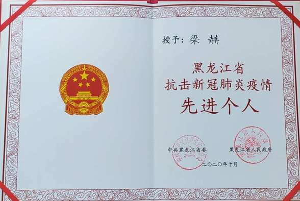 “省抗击新冠肺炎疫情先进个人”梁赫