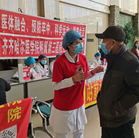 红手环志愿者为广大老百姓宣传讲解卒中知识