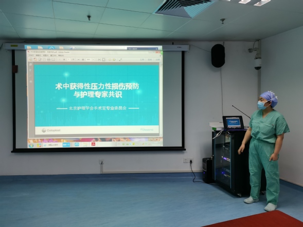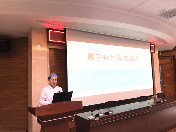 压疮小组成员、手术室副护士长梁赫作《术中获得性压力性损伤预防与护理专家共识》讲座