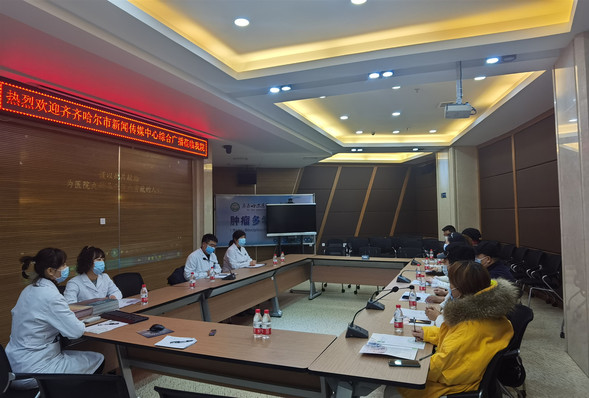 11月23日下午,齐齐哈尔市新闻传媒中心综合广播总监王鑫、副总监胡宇、刘晓丽一行7人与我院党委书记李玉雪、宣传科负责对外宣传工作的同志齐聚我院住院综合楼三楼会议中心,共商医院品牌建设和宣传推广之道。