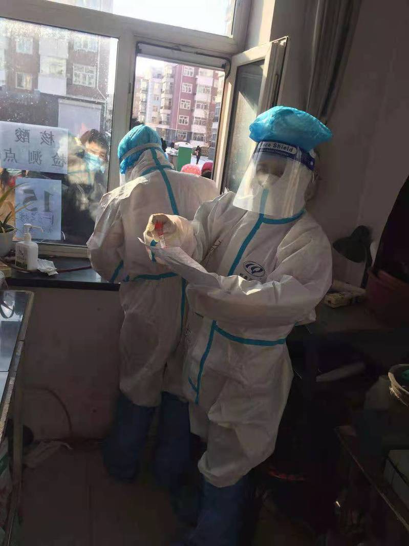 据杨丽侠护士长介绍,为了保证居民和自身安全,采样需在通风的环境下进行,队员们要一遍一遍指导被检者注意事项,并进行必要的解释和安抚工作。“请您取下口罩,张开嘴,啊……”,嘴上说着,手里还要忙着消毒、拿管、拆签、采样、装管等,看似简单、迅速的操作其实并没那么容易,有的采样点每完成一次采样工作,身体都要倾斜到寒冷的窗外完成采集动作,同样的动作要在寒冷的窗外重复上百遍,手冻得红肿也没有一个人喊苦、喊累,这让她再一次感受了附三人不计得失、不惧风险的奉献精神。