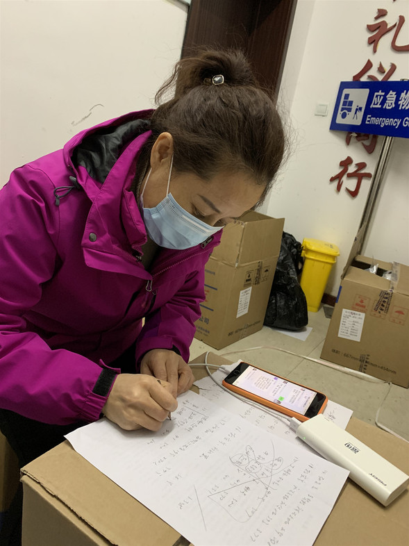 杨丽侠护士长一直坚持战斗到最后,脱掉防护服后的她又立即投入到数据整理及汇总工作中
