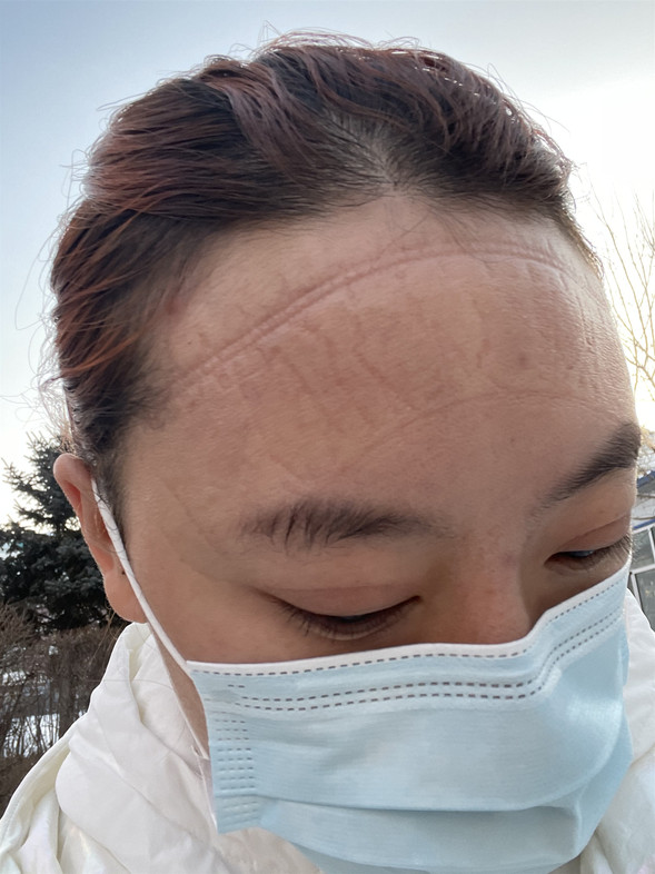 脱下防护服后,队员们的脸上已留下深深的印痕