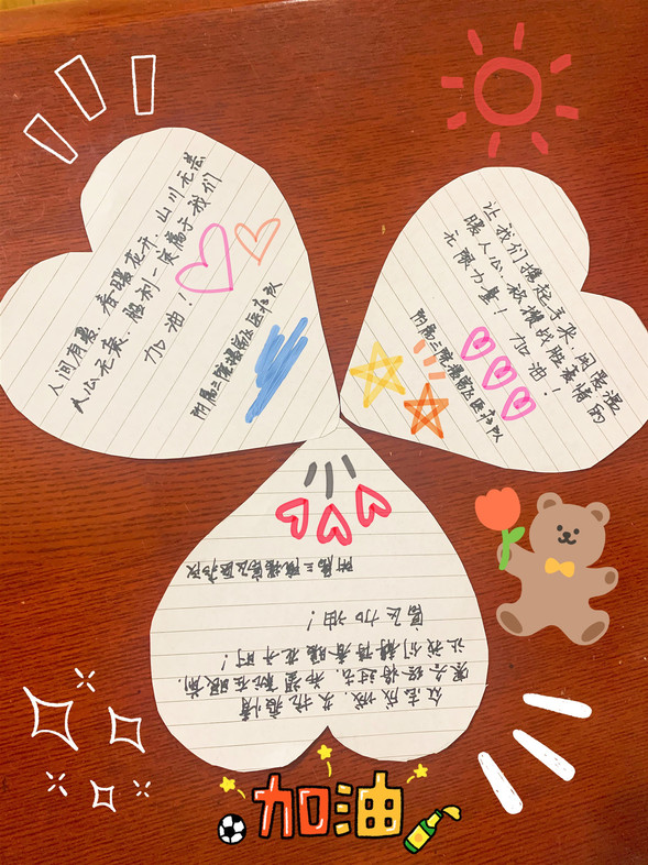 队员们亲手制作了爱心卡片,希望通过一张张爱心卡片,为富区居民们送去附三人的关怀和鼓励。