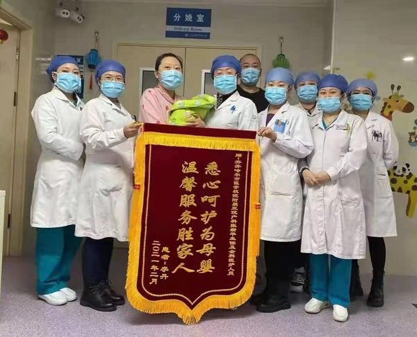 李丹顺利分娩,母女平安,赠送锦旗,向产科医护人员表达感激之情。