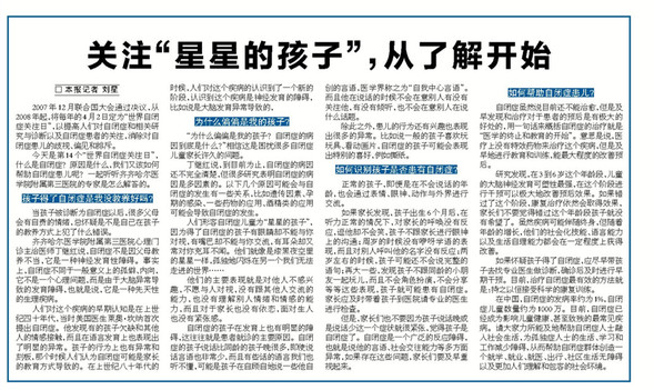 4月2日“世界自闭症日”,《齐齐哈尔日报》记者针对自闭症话题对我院心理门诊医生进行采访,请看报道。