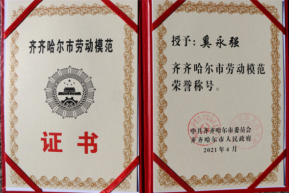 我院门诊部主任奚永强同志荣获齐齐哈尔市劳动模范光荣称