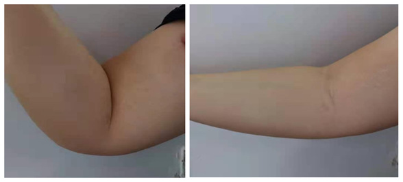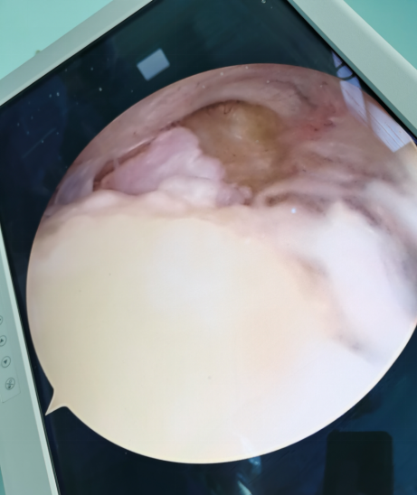 患者男,因右肘关节疼痛伴屈伸受限约2年,严重影响了工作和生活,曾辗转周边多家医院就诊,均建议给予切开手术,后患者多方打听到齐医附属三院微创骨科专家孙文才主任专业做微创手术后,到我院就诊,肘关节MRI提示右肘后鹰嘴窝处异位骨化、关节游离体形成,入院后经孙文才主任及其团队充分讨论,决定对其实施肘关节镜微创治疗手术,采用肘后内外侧标准入路,切口仅长约0.5cm,术中创伤小、出血微量,手术实施顺利,成功将游离体及异位骨化骨块取出,术后肘关节功能恢复好,患者对治疗效果非常满意。