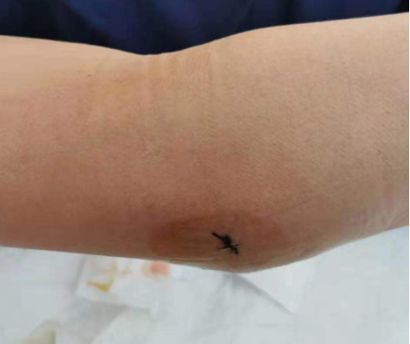 据孙文才主任介绍,传统手术需将关节腔切开后将游离体取出,而关节镜手术仅有2个约0.5cm的切口,具有手术切口小、损伤小、恢复快等优点。肘关节镜手术可应用于包括游离体、滑膜炎、肘关节粘连松解、骨关节炎、骨软骨缺损、韧带损伤等多种肘关节疾病。