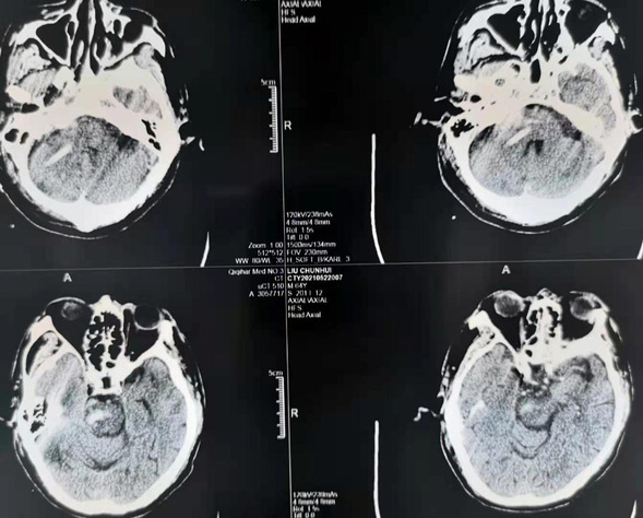 患者柳某,男性,64岁。5月20日晚突发意识障碍,送至我院,经头部CT后诊断为脑干出血。经神经外二科医疗团队讨论后决定行神经外科机器人辅助下脑干出血穿刺引流。在神经外科手术机器人的辅助下,将引流管经患者右侧小脑精准植入脑干血肿腔,手术圆满成功。