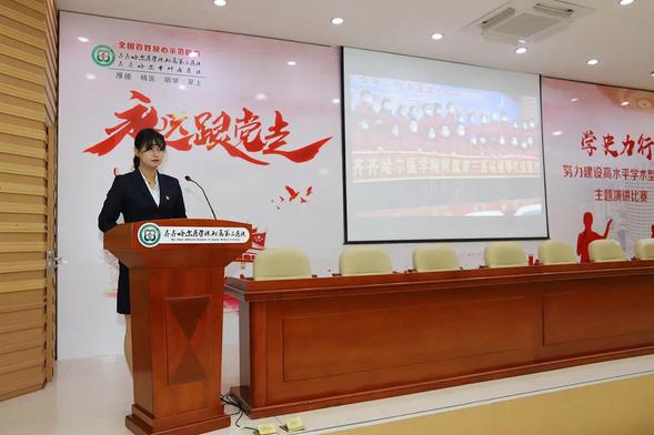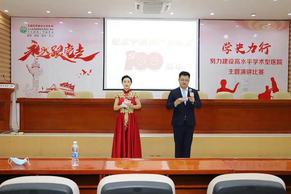 为庆祝中国共产党建党100周年,重温党的光辉历程,歌颂党的伟大成就,继承和发扬党的优良革命传统,进一步激发广大党员不忘初心情怀,加深爱党、爱国、爱院的真挚情感,促使大家以更加饱满的热情投入到医院发展当中,6月22日下午,我院党委举办了“永远跟党走——学史力行、努力建设高水平学术型医院”主题演讲比赛。党委书记李玉雪莅赛。