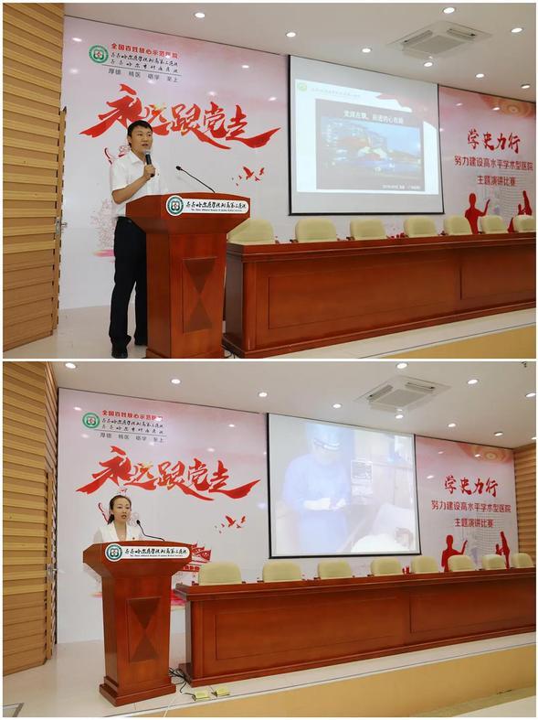 从6月初医院党委下发比赛通知开始,我院的党员们踊跃报名参加,各党支部通过预选推出了参赛的18名选手。比赛当天,选手们紧扣演讲主题,用诚挚的心声向党献礼。选手们或是饱含深情地讲述红色故事;或是娓娓道来革命者奋斗的点滴经历;或是以自身成长为见证,表达对党的忠诚和接续奋斗之志;或是结合医院的发展历史,追根溯源、观照现实,都表达了不负先辈遗志、不负人民所盼、不负时代所托的真挚情感,抒发了选手们对党和祖国以及对医院的无限热爱和对未来美好生活的憧憬。