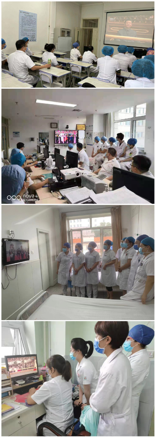 7月1日上午,庆祝中国共产党成立100周年大会在北京天安门广场隆重举行。中共中央总书记、国家主席、中央军委主席习近平发表重要讲话。为深入学习贯彻习近平总书记重要讲话精神,根据根据中央、省委、省委教育工委、学院有关要求和《中共齐齐哈尔医学院附属第三医院委员会关于开展建党100周年庆祝活动的方案》安排,我院党委组织领导班子、中层干部在门诊综合楼四楼会议室集中收听收看大会直播实况,各科室组织职工在办公室或示教室等地集中收听收看大会盛况。