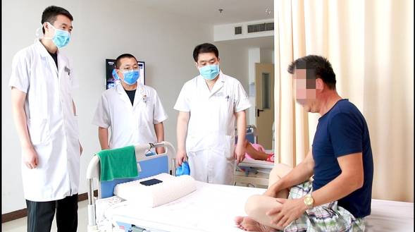 泌尿外科副主任姜韬带领医生查房,跟踪患者术后恢复情况。