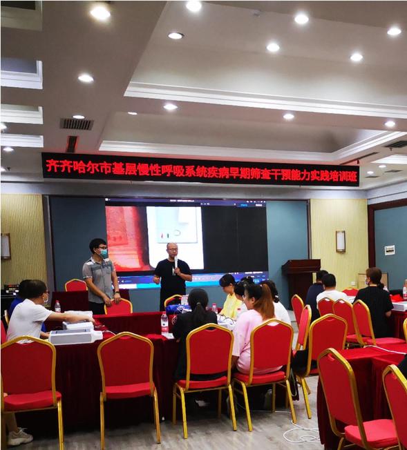 根据《黑龙江省基层呼吸系统疾病早期筛查干预能力提升项目管理工作方案》文件精神,为进一步提升能力建设,我院受齐齐哈尔市卫生健康委员会、齐齐哈尔市疾病预防控制中心指派,作为本次培训教学指定单位。我院主管领导高度重视此项工作,派出呼吸专业刘琰、牟海军、迟岩3名骨干教师承担本次培训授课工作,并派出继续教育科侯磊专门负责项目培训跟进及相关管理工作。