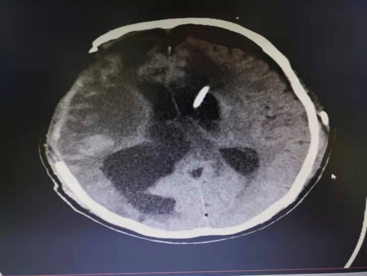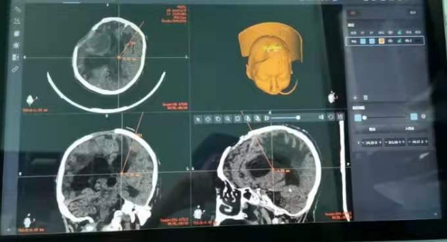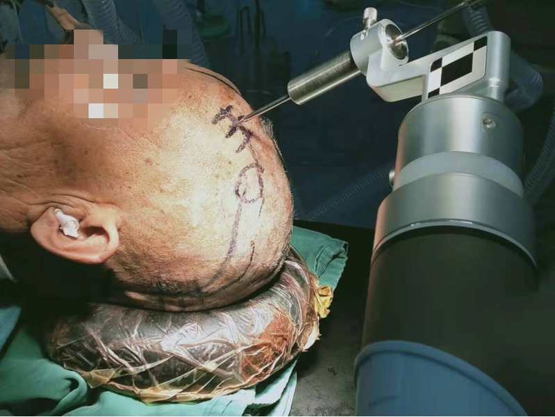 手术由高风全副主任医师和王庆历副主任医师共同完成,在神经外科机器人引导下,定位数据从术前CT上获得,以此作为定位依据确定穿刺点和靶点完成手术设计,精准打靶,成功完成立体定向下脑积水精准穿刺分流手术,术后脑积水完全缓解。