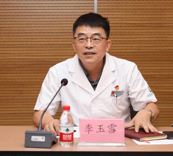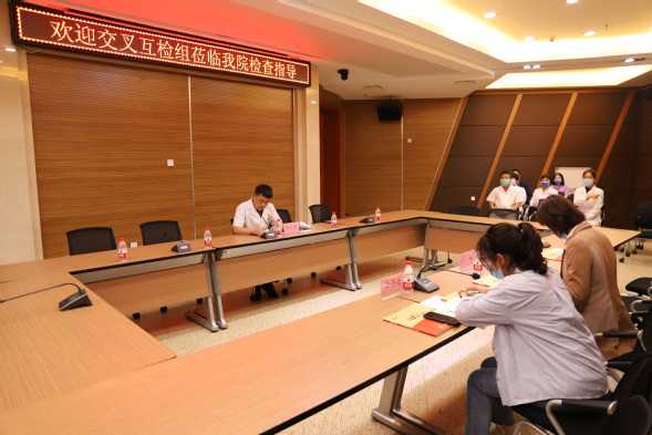 我院党委书记李玉雪作汇报。首先,他代表全院干部职工对交叉互检组的到来表示热烈欢迎和衷心感谢。随后,他从完善机制,为文明单位创建工作奠定坚实基础;强化理论武装,提高政治站位,创建“学习型医院”;履行社会责任,投身公益事业,创建“服务型医院”;尊法学法,守法用法,创建“法治型医院”;传承创新,以人为本,创建“人文型医院”;创新强技,彰显特色,创建“学术型医院”六个方面汇报了2019年以来我院文明单位创建工作取得的成效。