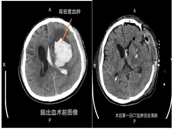 众所周知,脑出血发病急、进展快,严重时可在数分钟或数小时内危及生命。9月11日中午12时,一名从富裕县慕名而来的男性患者,因突发脑出血量约60ml破入脑室,且压迫脑干导致脑疝。脑疝的死亡率非常高,残疾率高,情况十分危急,需要立即进行开颅血肿清除手术。神经外一科张艳国主任和陈祥瑞副主任医师详细分析病情及制定手术方案,仅历时4个小时,顺利完成手术,术后患者状态良好。