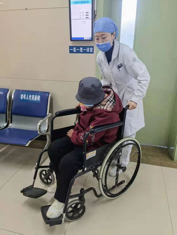 “姑娘啊!大娘走不动了,我要去做CT,大娘不知道怎么走啊!”我院外科分诊护士张书涵见状,立即上前帮助大娘,看到大娘的CT单上标注的是在住院综合楼一楼做CT,她先安抚好大娘,对大娘说:“大娘,您先在这等我一下,先坐一会儿,我现在去楼下给您取轮椅,然后我送您过去,大娘,您不要担心,我陪您去,好不好?”随后,她用轮椅推着患者送往住院综合楼一楼CT室,并帮助其排队、挂号,陪着大娘等候就诊,一切都安排妥当。“真是非常感谢你啊,姑娘,出现这个情况,我都不知道该怎么办了。岁数大了,啥也干不了了,多亏了有你!”患者连声感谢。“这都是我应该做的。”在这个特殊时期,我院分诊护士的暖心服务让患者感受到了温暖。