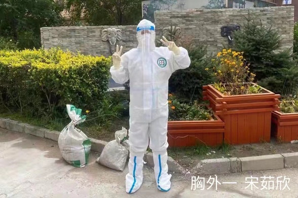 5个小时的车程终于到了巴彦,简单安顿调整,第二天我们就开始工作了,我的工作是每天为居民采集核酸,虽然穿着防护服很闷热、很辛苦,但是我觉得很自豪,因为我终于能用我所学的专业为社会做一点点贡献了!