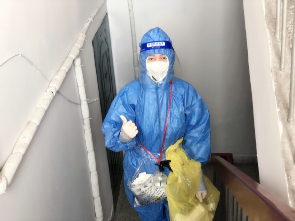 今天的任务是配合社区进行居家隔离人员核酸采集工作。爬楼36户,采集75人。入户采集确实是很辛苦的工作,要走3—4个小区,一层一层的爬楼梯。院领导始终心系我们,领队每天都在关心我们辛不辛苦,生活上工作上是否有困难。我们临危受命,奔赴巴彦县抗疫,后方还有同事坚守工作岗位,并承担着我们在科室的工作,他们的辛苦并不比我们少。想到这,再苦再累我们都可以抗过去!