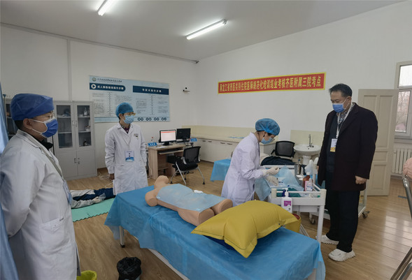 我院作为黑龙江省西医类别住院医师规范化培训结业考核加试考点,院领导高度重视,副院长孙茂林对考试流程、考场安排、防疫措施等进行了详细了解及实地察看。