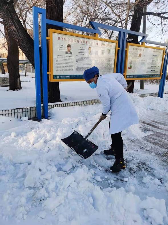党徽,在暴风雪中闪耀。沧海横流方显英雄本色,烈焰熊熊才能炼出真金。主题党日活动中,全科党支部书记佟旭带领广大党员和群众充分发挥先锋模范作用,不畏严寒,奋力铲雪,担当作为。