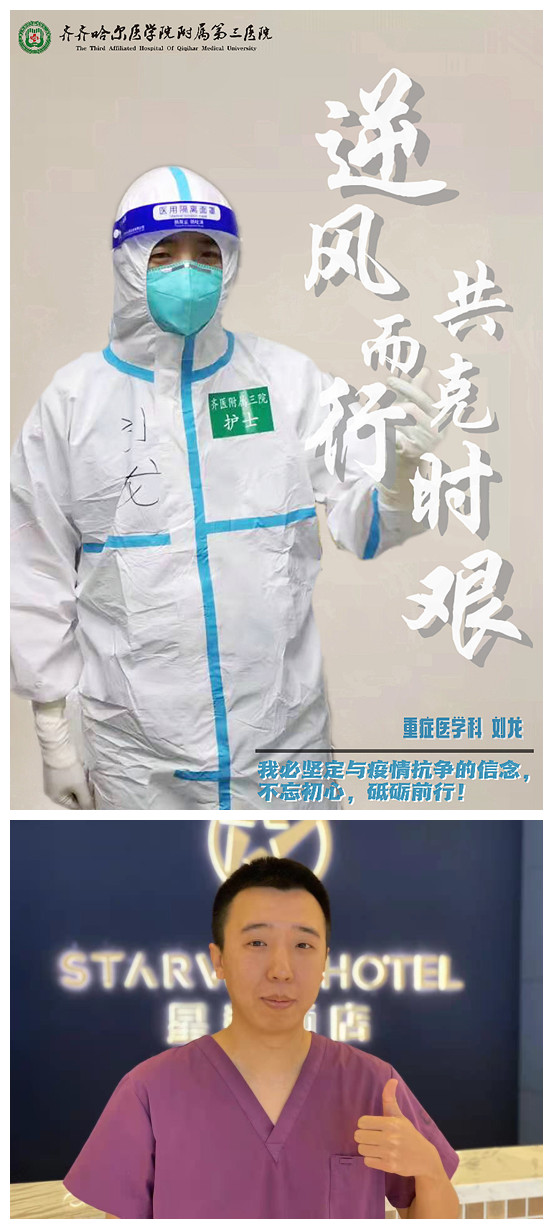 今日【战“疫”快讯】专栏将精选我院援黑河抗疫医疗队员刘龙的战地日记。刘龙因从小被姥姥带大所以与老人情谊深厚,老人年纪大了为了照顾她方便,他主动搬去与姥姥同住。姥姥两年前患输尿管恶性肿瘤,一直保守治疗,几次住院都是刘龙照顾。疫情当前,作为重症医学科的护士,他知道自己的责任和使命,便告别亲眷,义无反顾投入到哈尔滨市巴彦县的支援工作中,10月27日解除隔离返回家中。当得知黑河疫情爆发,10月30日再次主动报名支援黑河。刘龙的妈妈再次目送宝贝儿子踏上了抗疫征程。临行前,刘龙妈妈对刘龙说:“这是你的工作,我非常支持,我一定照顾好姥姥”说完她潸然泪下。在黑河抗疫前线,他又有怎样的感触和故事要与大家分享呢?