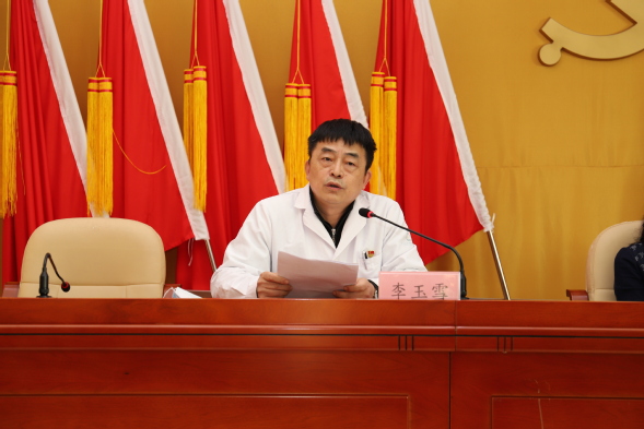 我院党委书记李玉雪讲话,他代表医院领导班子向荣获“第三届齐齐哈尔医学院名医”的6位专家表示祝贺。他通过“厚德、精医、砺学、至上”四组词展开讲话,并对全院医务工作者提出四点希望:一是希望诸位名医及全院医务工作者,要学习领会院党委的决策部署,全力推进阶段性重点工作,确保规划目标如期实现。要提高政治站位,立足发展大局,把个人职业规划和学科建设、科室管理、医院目标统一起来,统一方向、统一措施、统一步伐、统一路径,才能促进医院乘势而上、加快自身成长;二是希望全院各科室要继续精心配合、团结奋战。各科室要有大局意识,团结精神,全院上下要统一思想、达成共识,精心合作,心往一处想,劲往一处使,形成推动医院高质量持续发展的强大合力;三是希望今天受表彰者及全院医务人员要继续刻苦钻研,不断学习,提高能力。业精于勤,在我们医学研究领域,新病种、新问题不断呈现,这要求我们要勤于研究,静心钻研,不断追求精益求精的技能,增强“能看病,看好病”的能力;要与时俱进,不断加强业务学习培训,掌握新知识,新技能,全面提升专业技术诊疗服务能力,特别注重提高处理危重疑难复杂病人的能力,要做到“看别人看不了的病,做别人做不了的手术”;四是希望诸位名医及全院医务工作者,要胸中有全局,心中有百姓,身边有患者,把自己的服务延伸下去,扩散开来。用自己周到的服务,精湛的技术,形成磁力、吸引力,并通过口碑效应把自己的影响力推介出去,扩散出去。要心中有责任、肩上有担当。